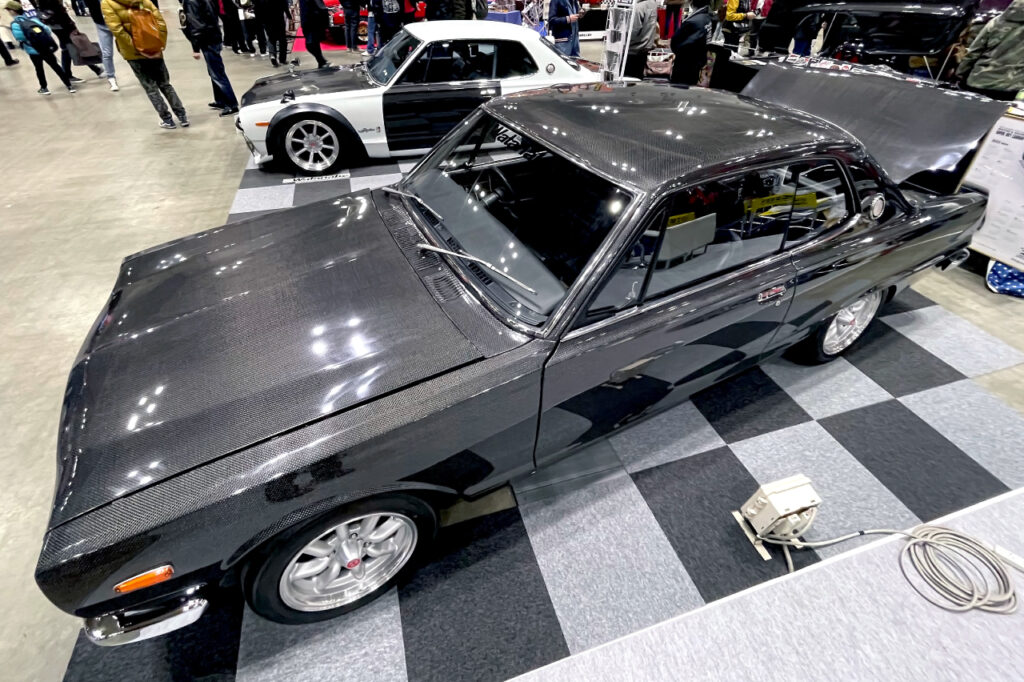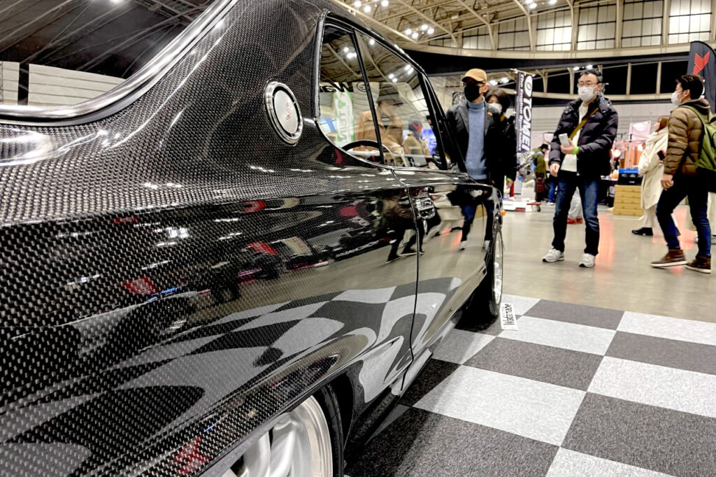 フロントホイールアーチ後方からテールまでのボディサイドを走る彫刻的なプレスライン「サーフィンライン」に魅せられ「ハコスカ」ファンとなりました。今から50年前の車両の為、ボディの各具が腐食してる車両が多く、今後永きにわたり、この車輌を維持していく為に、軽量かつ高強度の「ハコスカ」用ドライカーボンパーツの製作に至りました。